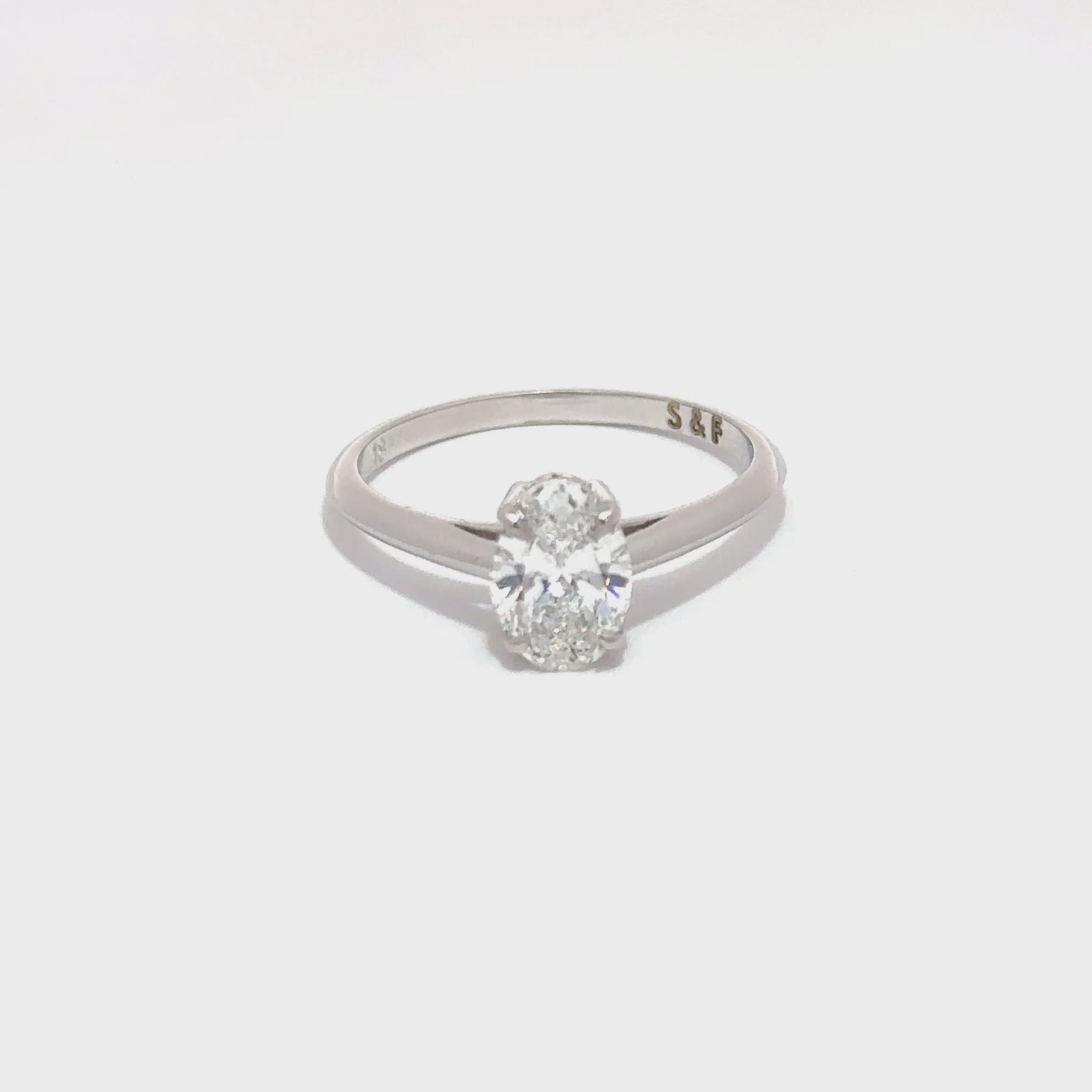 This 1.00 carat oval cut Lab-Created diamond is set in 10K or 14K white gold, offering a clean, elongated silhouette that captures light with remarkable grace and fire. The soft curves of the oval shape enhance its brilliance, while the polished band provides a modern yet enduring finish.